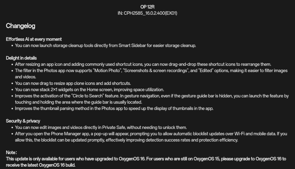 Regular updates like OxygenOS 16.0.2.400 help keep the OnePlus 12R running smoothly and ensure compatibility with newer apps and services. Even when changes appear minor, they often include behind-the-scenes improvements that enhance overall reliability.