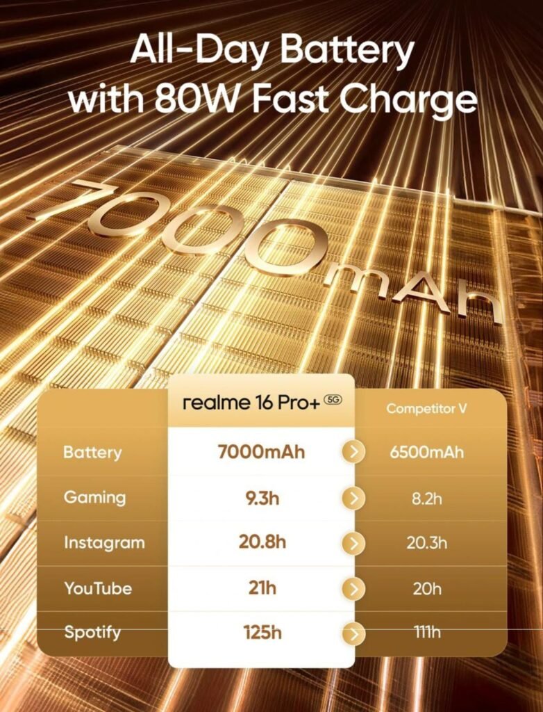 Under the hood, the Realme 16 Pro+ 5G is expected to deliver solid everyday performance: