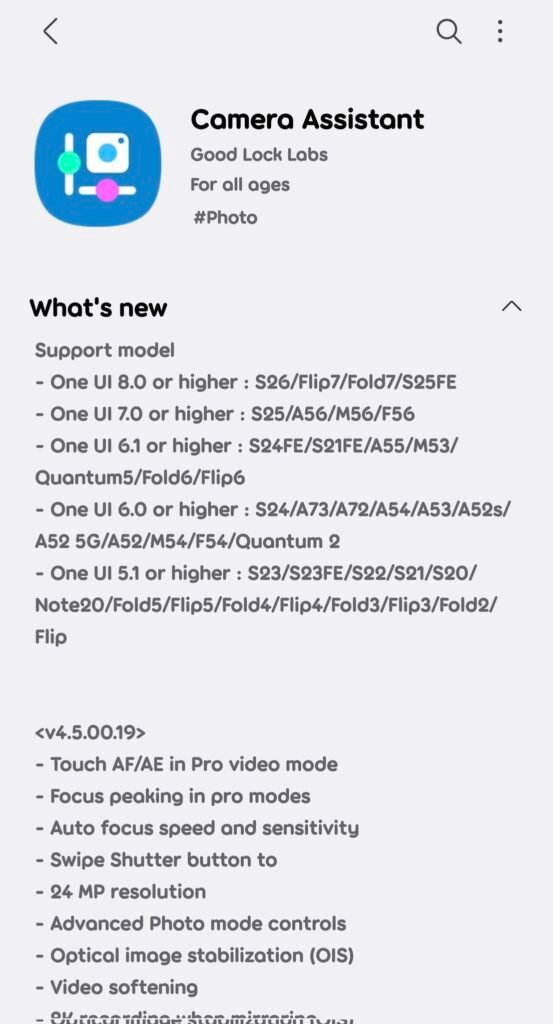 Samsung has released a significant update to its Camera Assistant app, and the timing suggests clear preparation for the next flagship cycle.