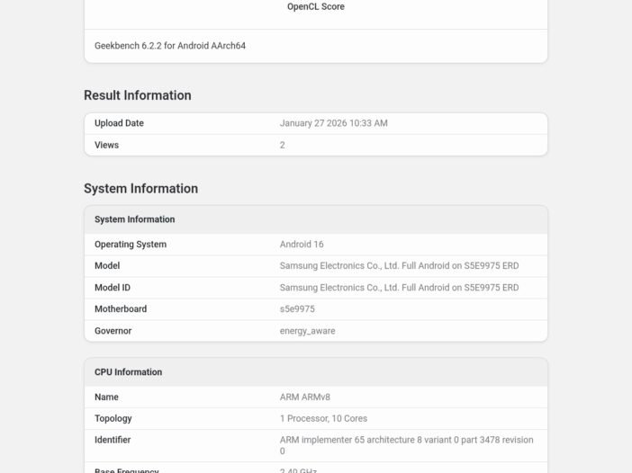 Samsung’s next-generation mobile chipset may already be quietly testing in the wild. An early Geekbench listing has revealed what appears to be the Exynos 2700, giving the first real … [Read more...] about Samsung Exynos 2700 Surfaces on Geekbench Ahead of Official Launch