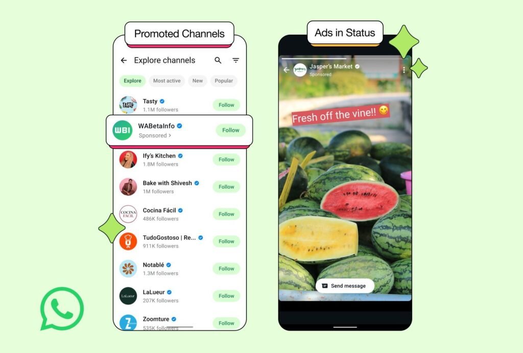 - The rollout includes Promoted Channels and ads appearing within Status, bringing discovery and business promotion directly into the app.